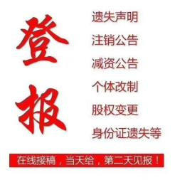 登报办理便民服务中心,省级刊登报刊,证件挂失,公告