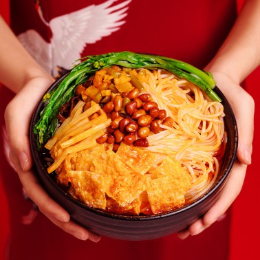柳州螺蛳粉是用螺蛳汤料、米粉和特定配料制作的一道主食,米粉含蛋白质、碳水化合物等成分具有健脾功效,适于脾气虚弱。