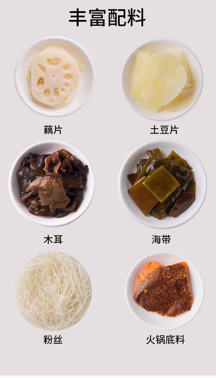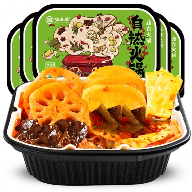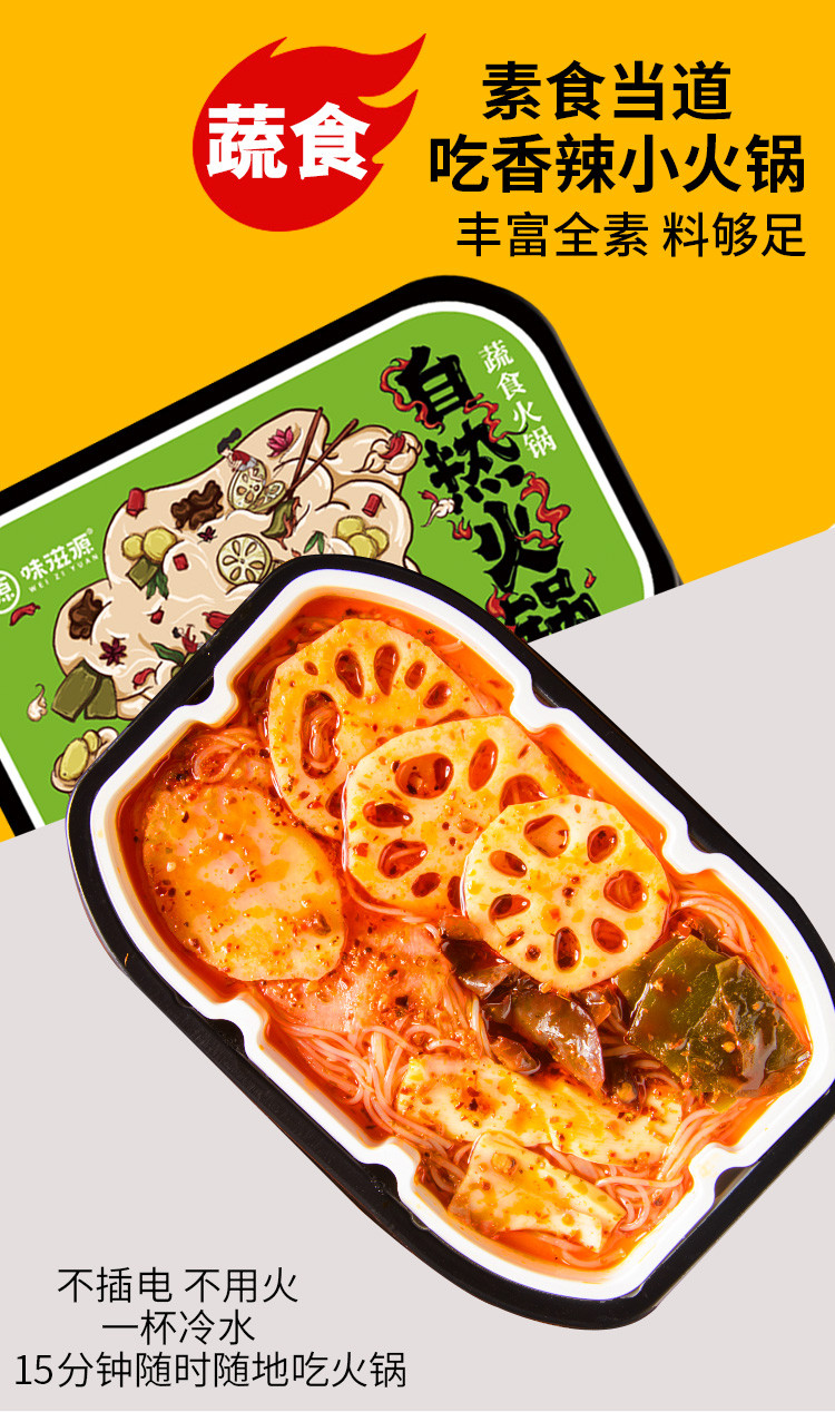 释放出热量,从而使得上层食材锅内的食物吸收热量后温度升高。除“自热火锅”外,它也被称为“微火锅”“清煮火锅”“自煮火锅”等。