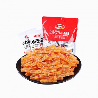 先将面粉与盐、味精等放到一起搅拌,然后将其倒入压面机中加热,压熟的面之后被压制成长条面筋,通过“油刷”上油后,再切割成小块,醮上油榨的孜然、辣椒面、芝麻等辅料