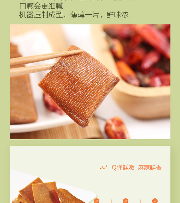豆腐干,中国传统豆制品之一,是豆腐的再加工制品。咸香爽口,硬中带韧,久放不坏,是中国各大菜系中都有一道美食。豆腐干营养丰富,含有大量蛋白质、脂肪、碳水化合物,还含有钙、磷、铁等多种人体所需的矿物质。豆腐干在制作过程中会添加食盐、茴香、花椒、大料、干姜等调料,既香又鲜,久吃不厌,被誉为“素火腿”。