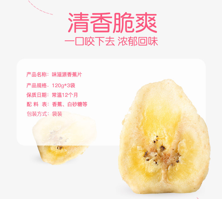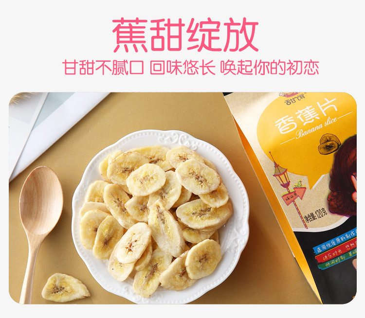 以广西栽培主要香蕉品种——拿龙蕉为原料,采取热风干燥加工法。香甜酥脆的香蕉干,果肉十分纤细,咀嚼即化,老少皆宜
