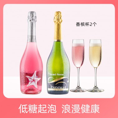 【2.3折】【520组合】浪漫桃红&复古森林起泡酒葡萄酒鸡尾酒2支香槟杯