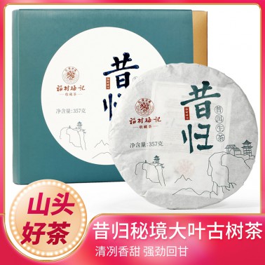 【1.6折】昔归普洱茶生茶357g云南老树生饼普洱生茶叶礼盒配礼袋