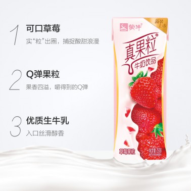 真果粒牛奶饮品收到了,里面有4种口味的,草莓+芦荟+椰果+桃果粒的,酸酸甜甜的,里面竟然还有小果粒,非常好喝的味道。蒙牛真果粒真的很不错,大人小孩喜欢喝,反正我是多次来购买了,我超级喜欢的...