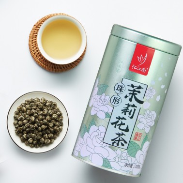 其香气鲜灵持久、滋味醇厚鲜爽、汤色黄绿明亮、叶底嫩匀柔软。经过一系列工艺流程窨制而成的茉莉花茶,具有安神、解抑郁、健脾理气、抗衰老、提高机体免疫力的功效,是一种健康饮品