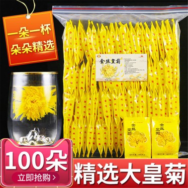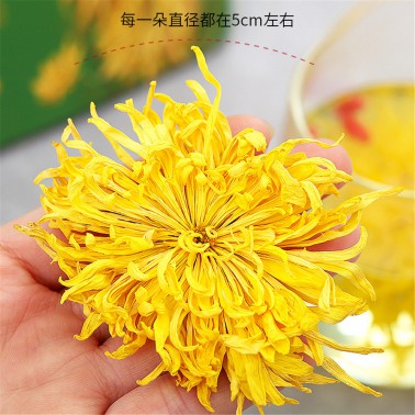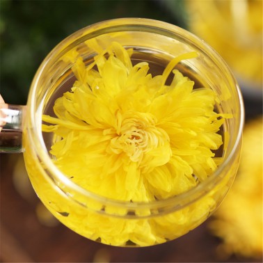 菊花茶,是一种以菊花为原料制成的花草茶。菊花茶经过鲜花采摘、阴干、生晒蒸晒、烘培等工序制作而成。据古籍记载,菊花味甘苦,性耐寒,有散风清热、清肝明目和解毒消炎等作用。菊花茶起源于唐朝,至清朝广泛应用于民众生活中。