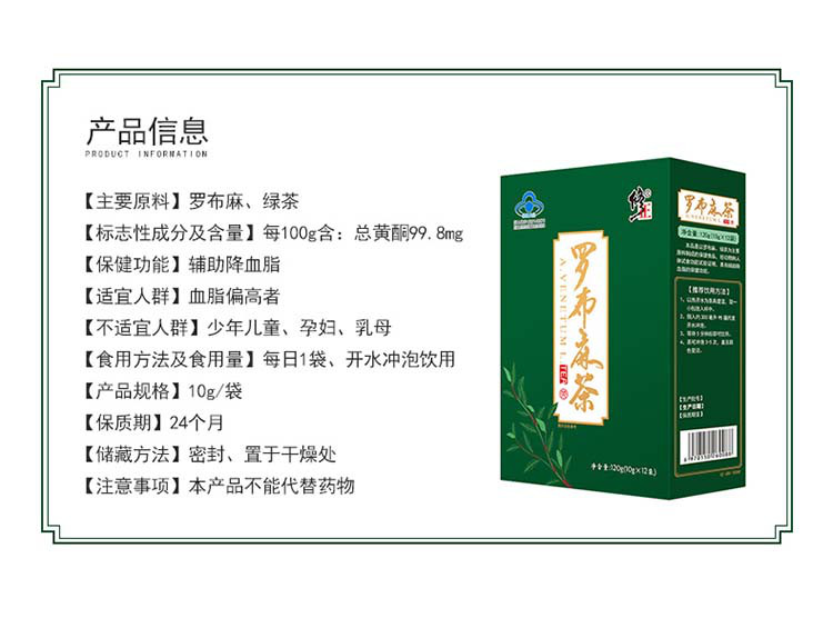 罗布麻茶,平肝安神,清热利水。用于肝阳眩晕,心悸失眠,浮肿尿少;高血压病,神经衰弱,肾炎浮肿。
